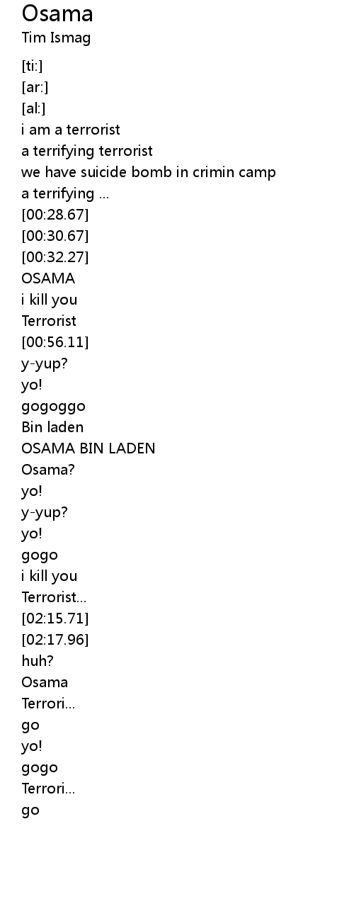 | [00:18.50] | we have suicide bomb in crimin camp |