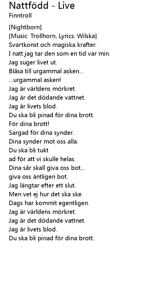 | [Music: Trollhorn, Lyrics: Wilska] | |