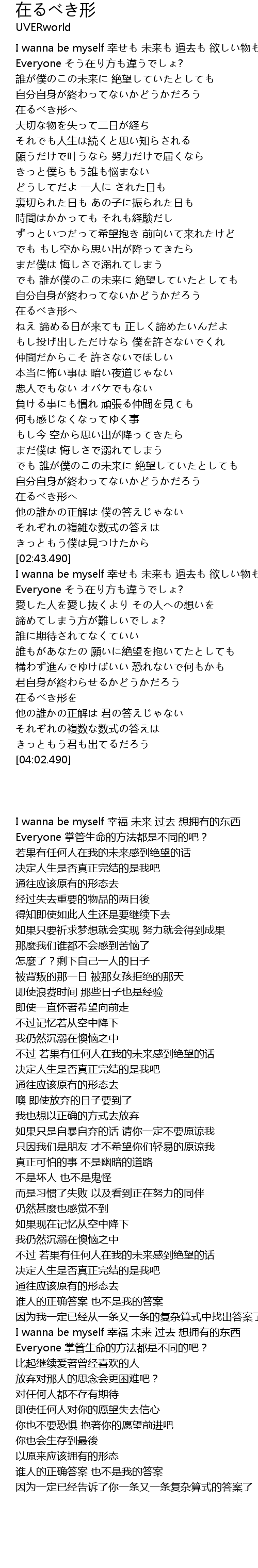 | [03:01.490] | I wanna be myself xing wei lai guo qu yu wu |