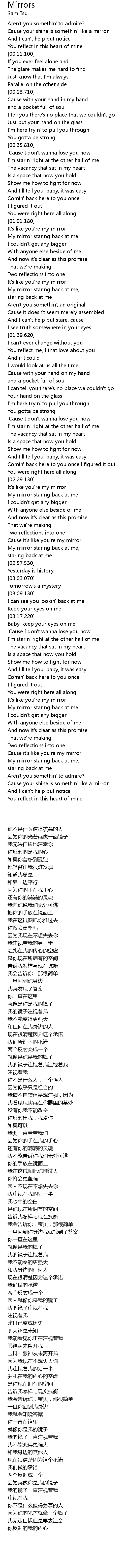 Cause it's like you're my mirror |