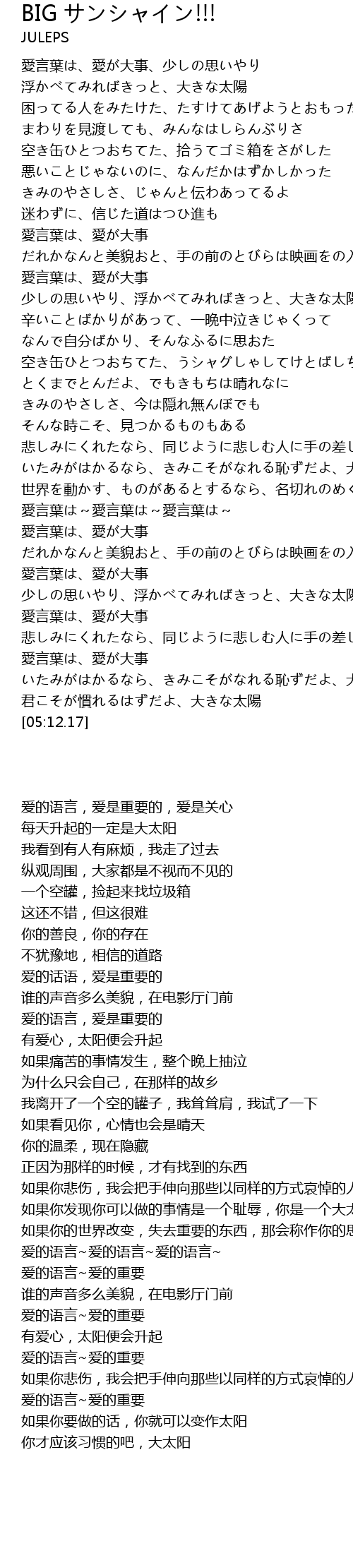 | [04:46.96] | いたみがはかるなら、きみこそがなれる恥ずだよ、大きな太陽 |