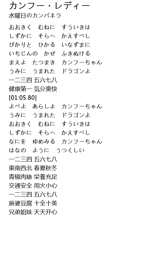 | [01:22.58] | よべよ あらしよ カンフーちゃん |