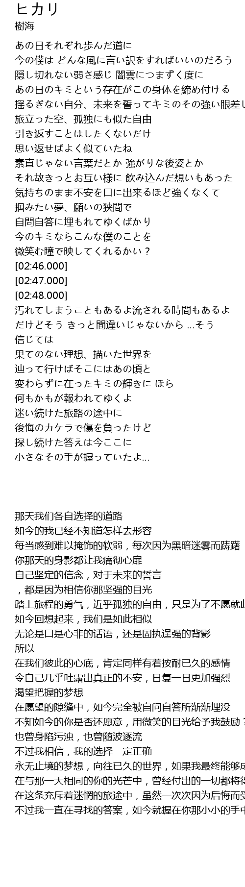 | [01:54.940] | それ故きっとお互い様に 飲み込んだ想いもあった |