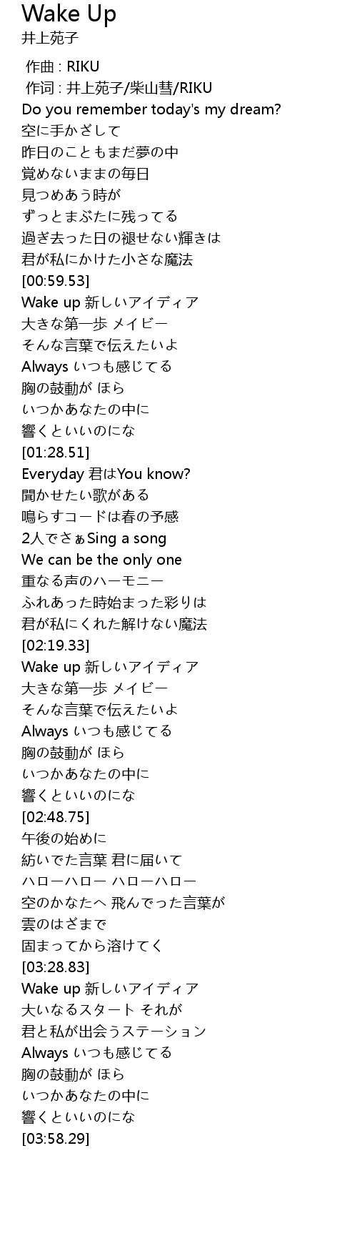 | [00:59.99] | Wake up 新しいアイディア |