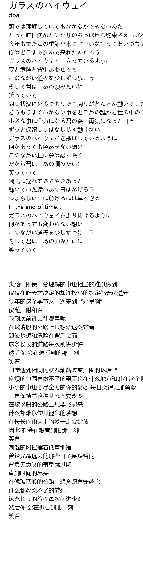 | [02:32.595] | ガラスのハイウェイを飛ばしているように |