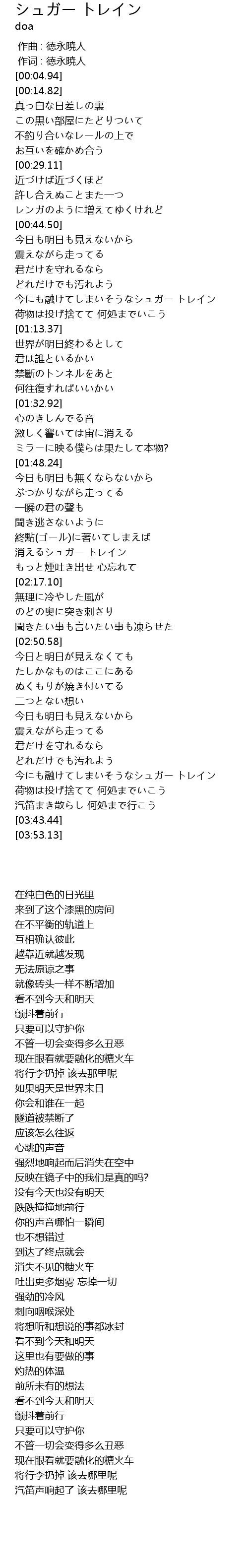 | [02:07.23] | 消えるシュガー トレイン |