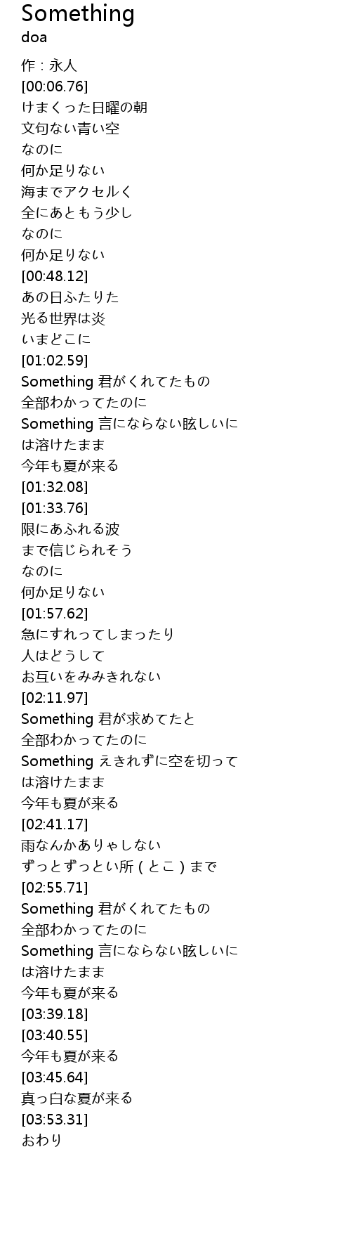 | [03:09.79] | Something 君がくれてたもの |