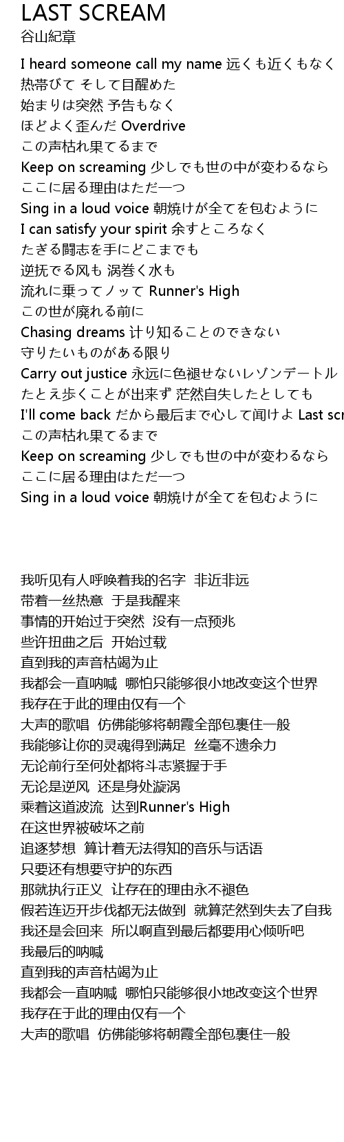 | 歌曲 | LAST SCREAM |