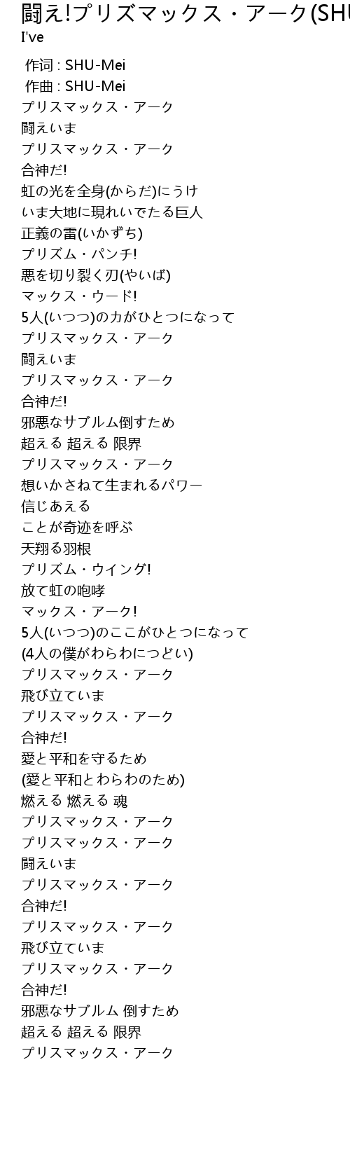 | 歌曲 | 闘え!プリズマックス・アーク(SHU-Meiソロバージョン) |