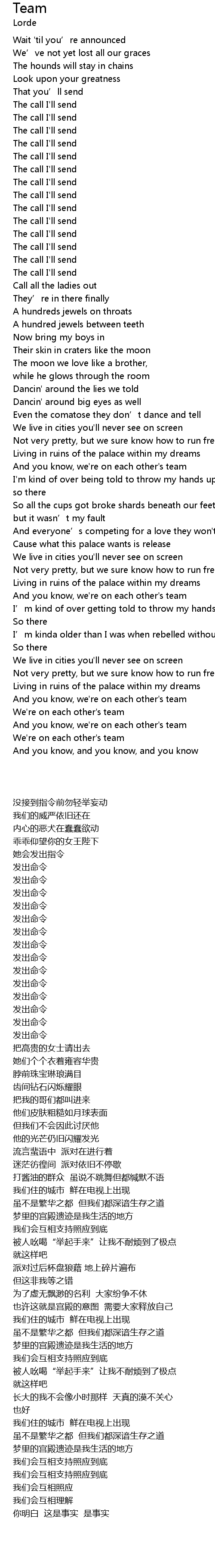 | 歌曲 | Team |