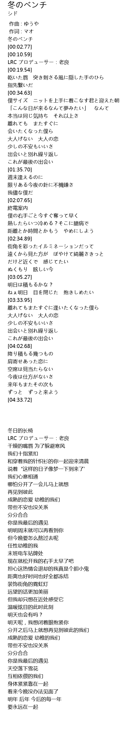 | [00:00.04] | 冬のベンチ |
