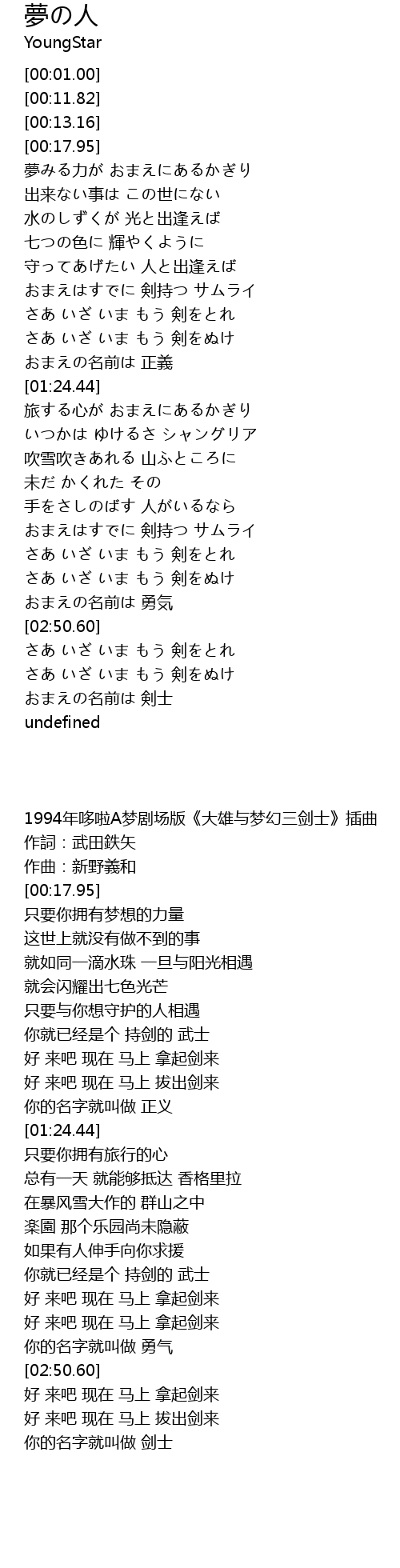 1994年哆啦A梦剧场版《大雄与梦幻三剑士》插曲 |