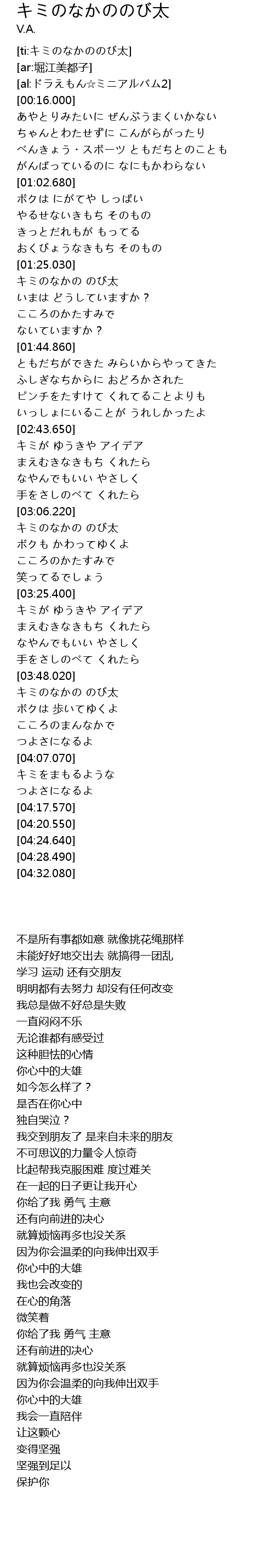| [03:49.670] | キミのなかの のび太 |