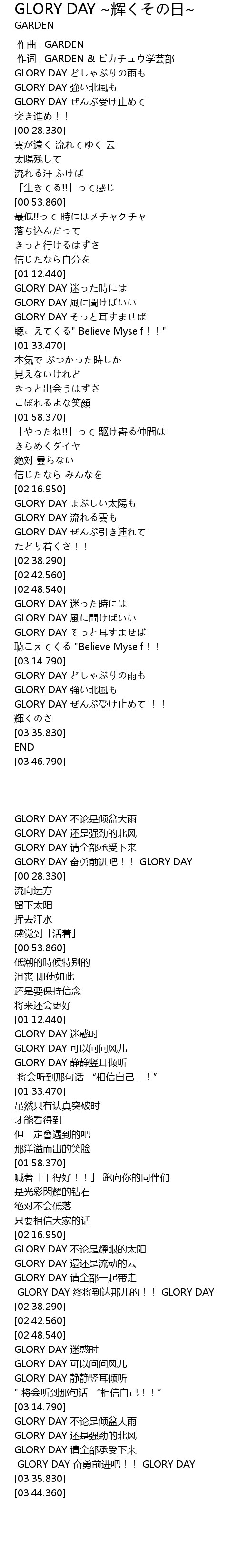 | [03:30.290] | GLORY DAY 奋勇前进吧!! GLORY DAY |