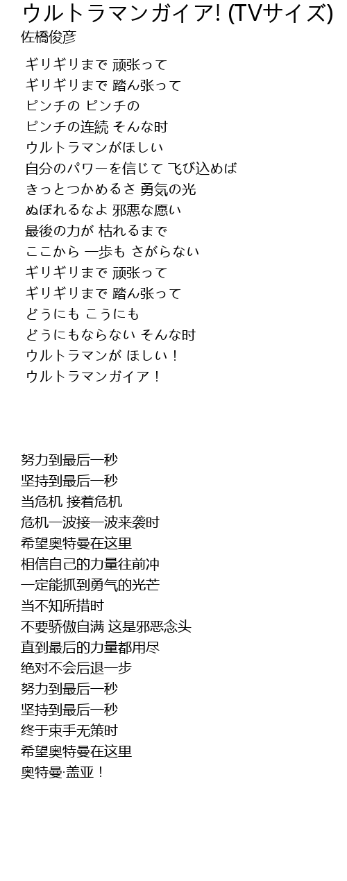 | 歌曲 | ウルトラマンガイア! (TVサイズ) |