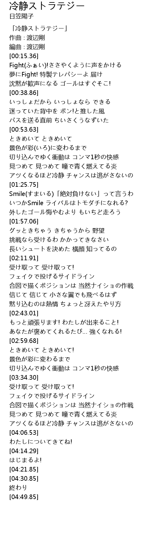 | [00:00.36] | 「冷静ストラテジー」 |