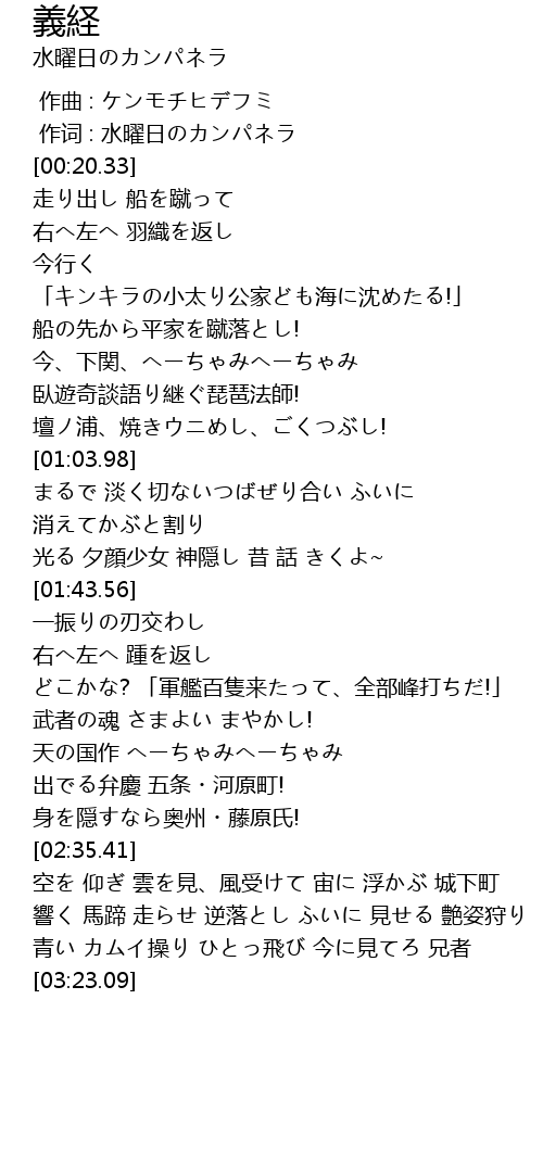 | [02:24.73] | 出でる弁慶 五条・河原町! |
