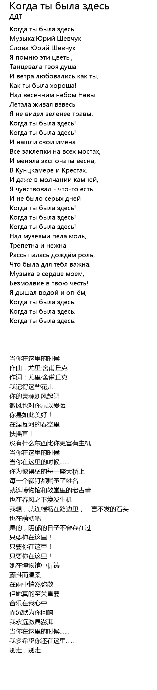 | 歌曲 | Когда ты была здесь |