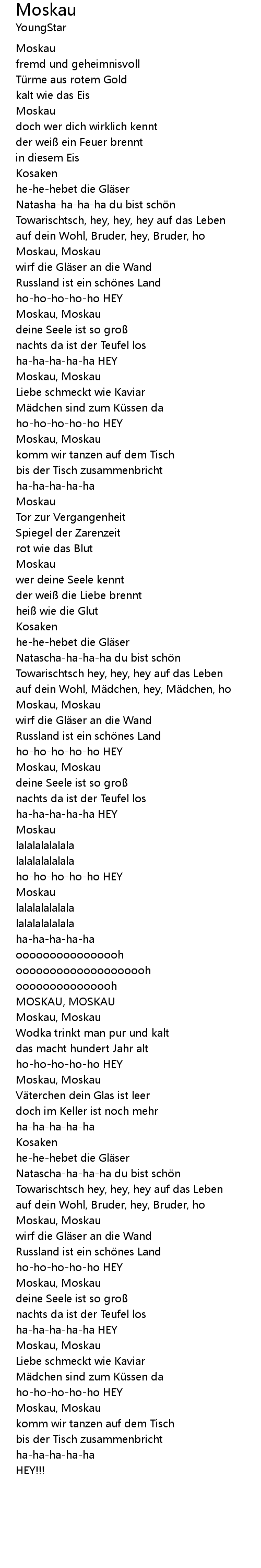 | 歌曲 | Moskau |
