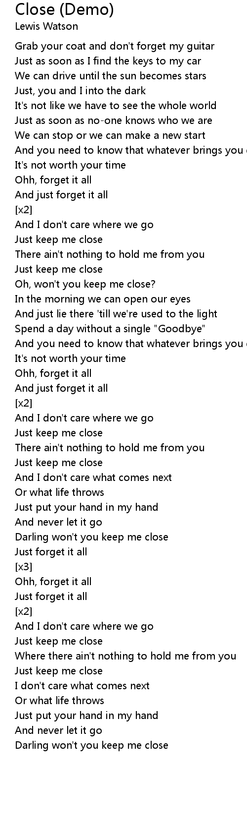 Just keep me close |