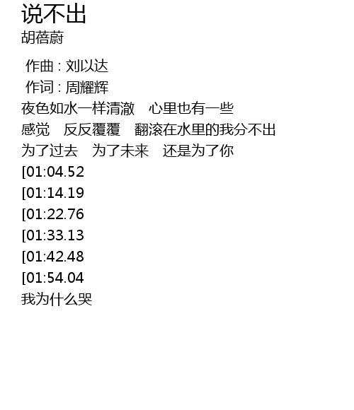 | [03:25.93][01:54.04] | 忍不住 说不出 我为什么哭 |