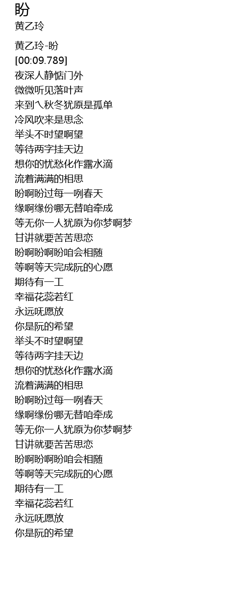 | [00:00.787] | 黄乙玲-盼 |