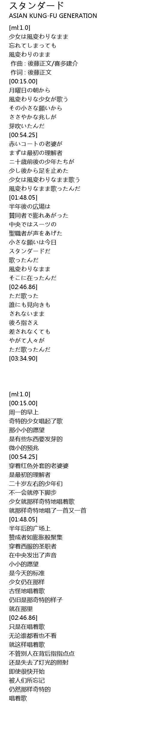 | [00:01.00] | 作词 : 後藤正文 |