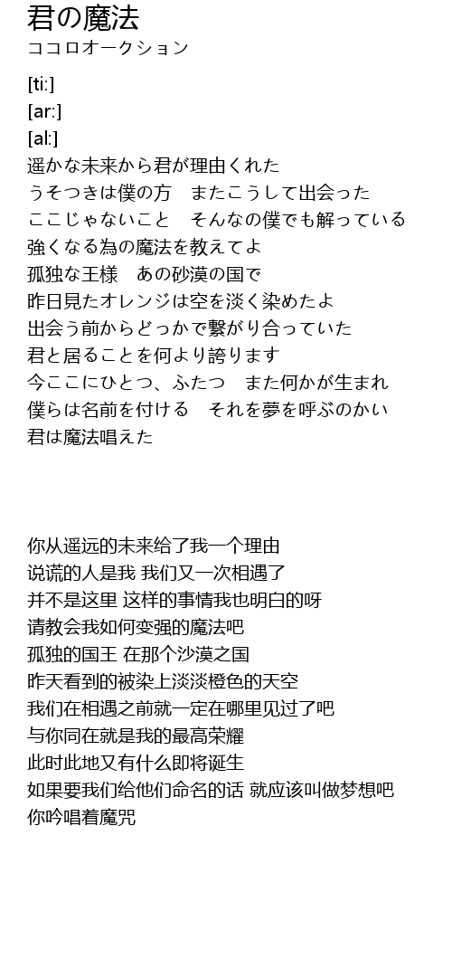 | [01:36.74] | 君は魔法唱えた |