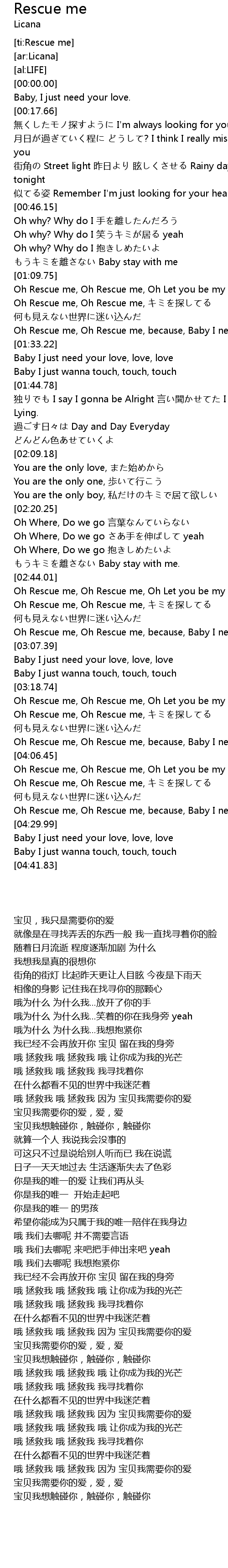 | [04:24.29] | Oh Rescue me, Oh Rescue me, because, Baby I need your love. |