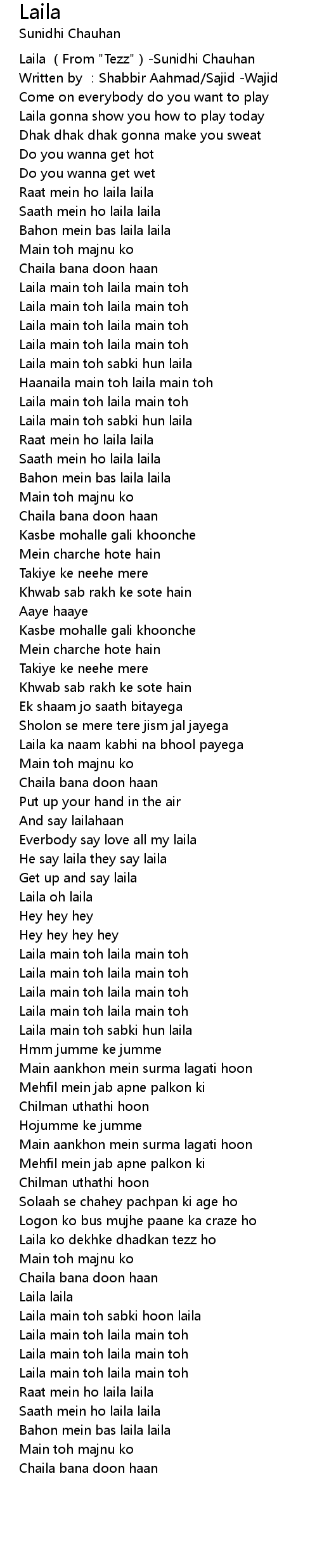 | [00:00.756] | Laila From " Tezz" Sunidhi Chauhan |
