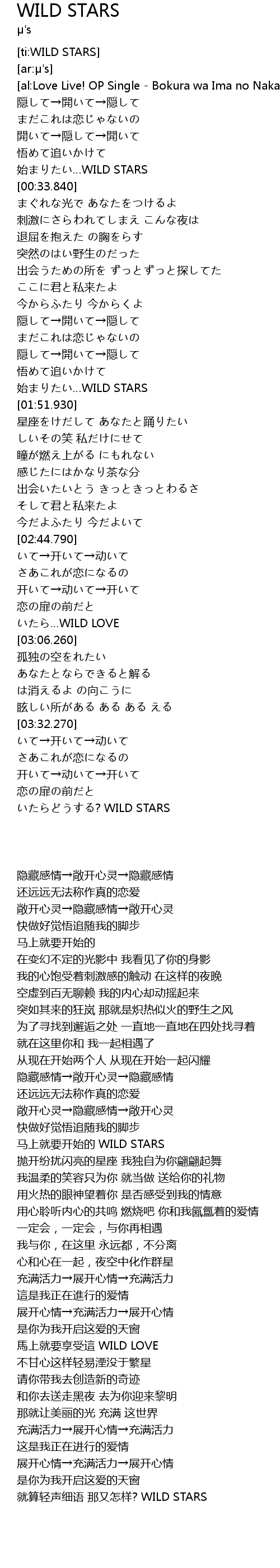| [03:53.13] | 就算轻声细语 那又怎样? WILD STARS |