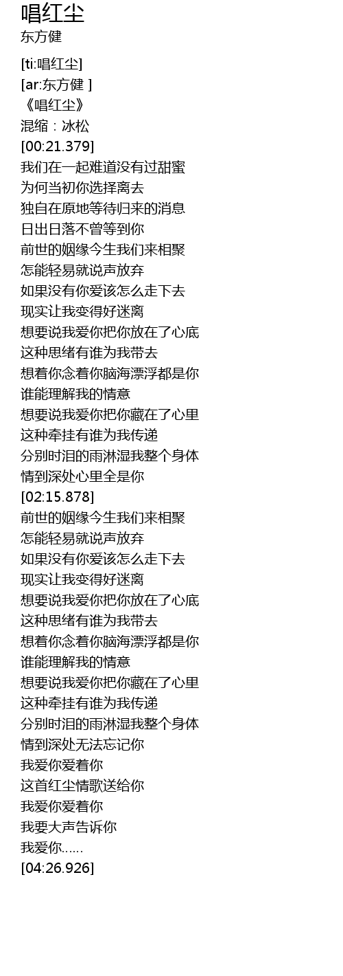 | [00:00.542] | 《唱红尘》 |