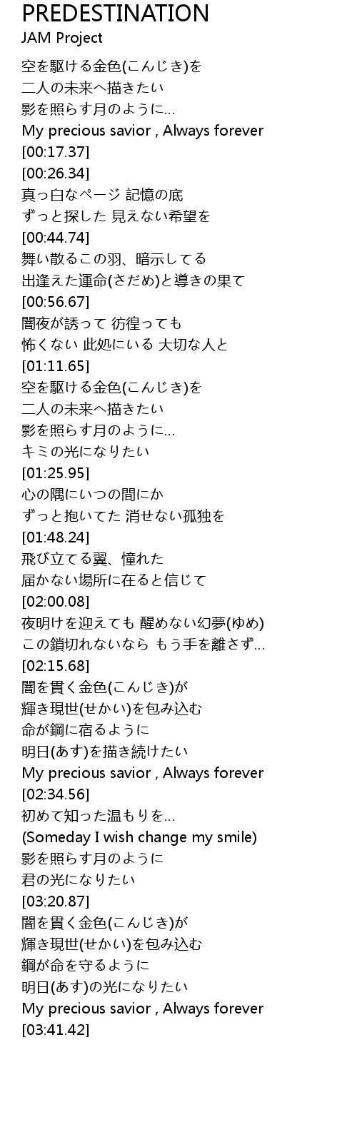 | [00:50.56] | 出逢えた運命(さだめ)と導きの果て |