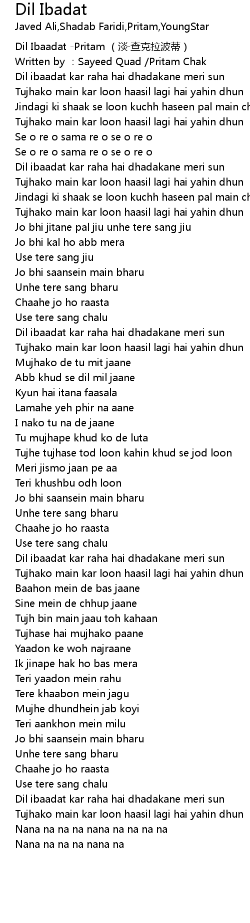 | [00:00.00] | Dil Ibaadat Pritam dàn chá kè lā bō dì |
