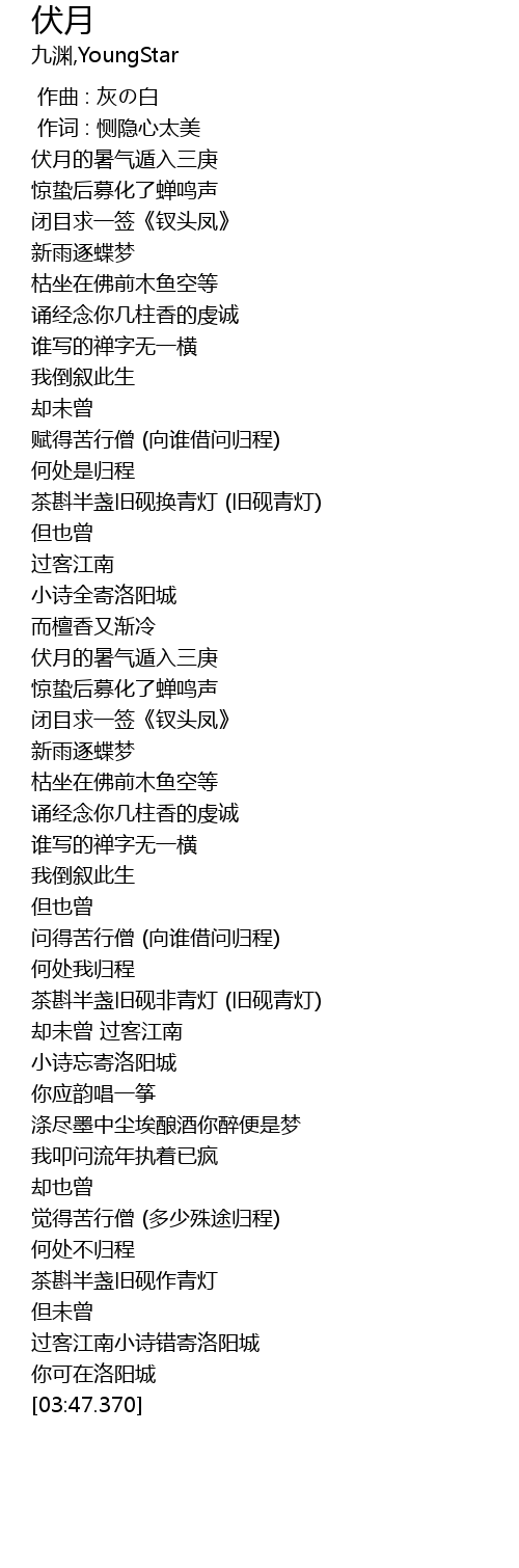 | [01:40.210] | 伏月的暑气遁入三庚 |