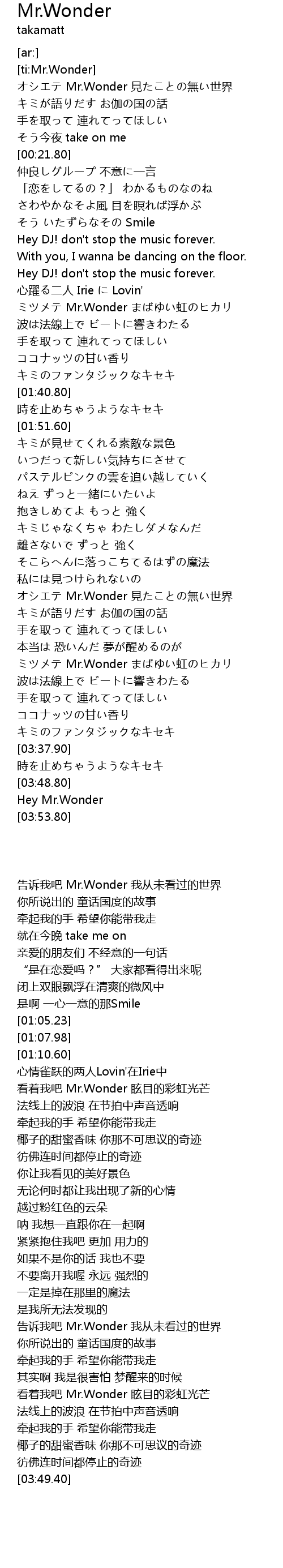 | [02:51.00] | Mr. Wonder jiàn wú shì jiè |