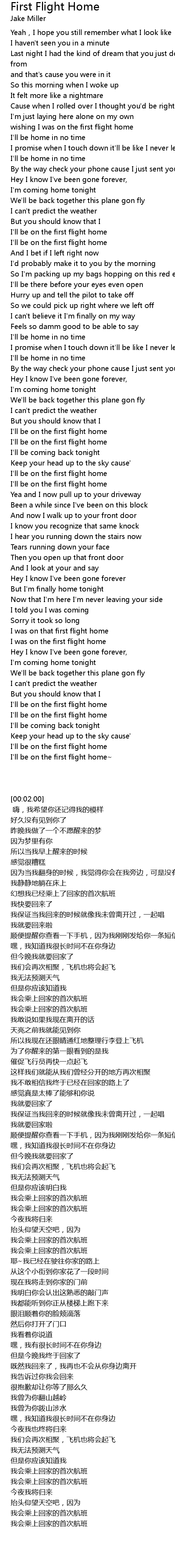 | [00:52.18] | 我会乘上回家的首次航班 |