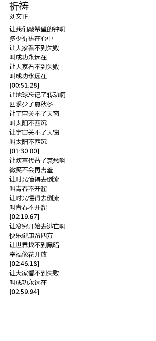 | [00:20.18] | 多少祈祷在心中 |