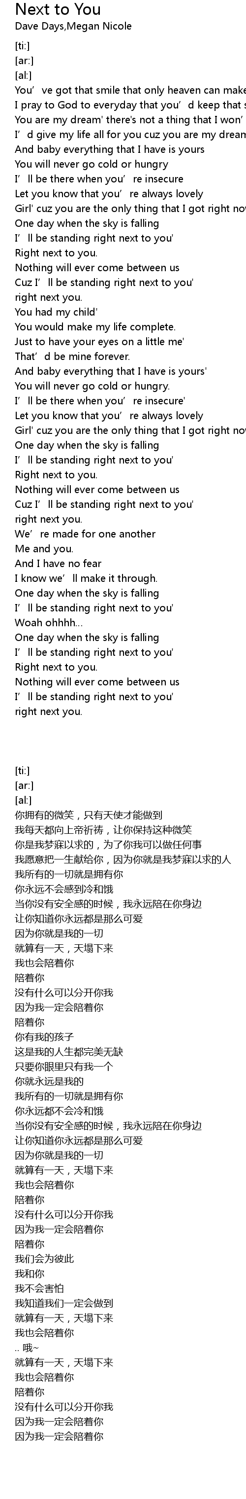 | [02:20.64] | Cuz I’ll be standing right next to you' |