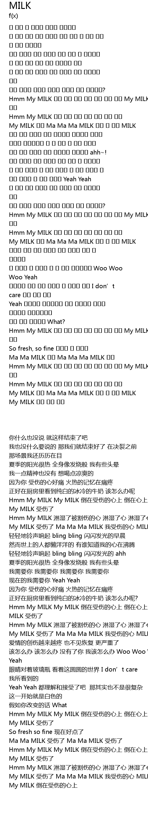 | [03:14.010] | Hmm My MILK My MILK 倒在受伤的心上 倒在心上 倒在心上 My MILK 受伤了 |