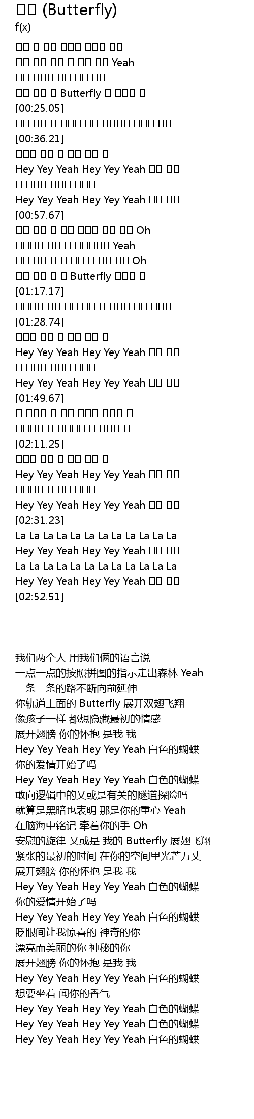 | [02:36.89] | Hey Yey Yeah Hey Yey Yeah 白色的蝴蝶 |