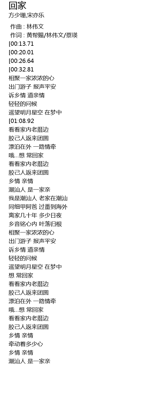 [01:11.72][01:08.92] 想 常回家