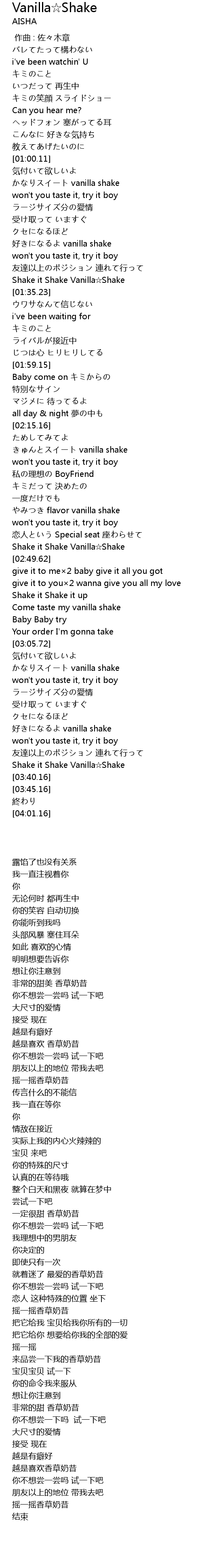 | [03:35.59] | Shake it Shake Vanilla Shake |