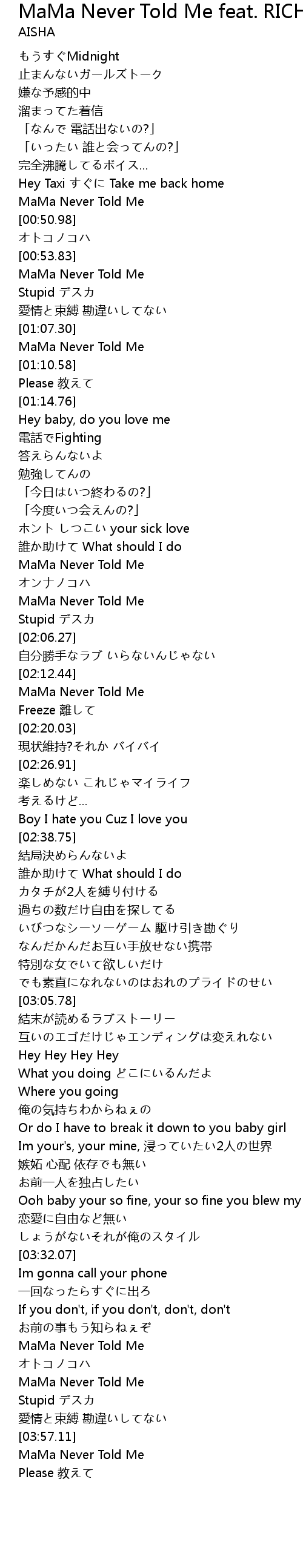 | [00:48.64] | MaMa Never Told Me |