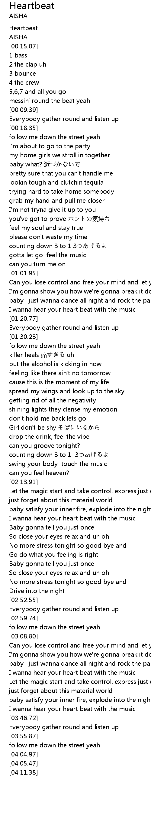 | [03:41.60] | I wanna hear your heart beat with the music |