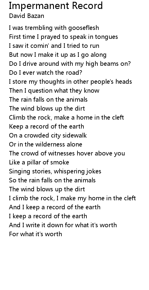 And I keep a record of the earth |