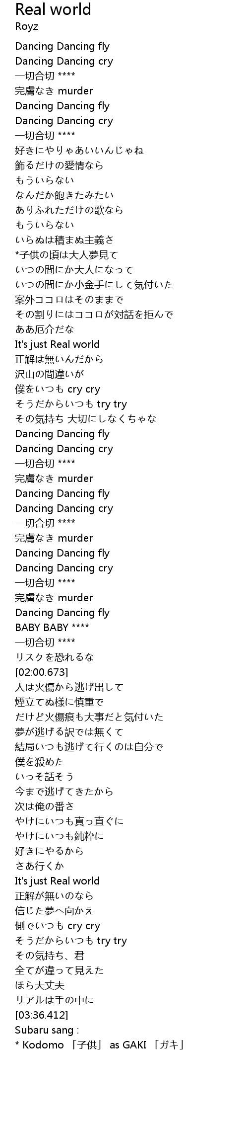 | [03:38.789] | * Kodomo 「子供」 as GAKI 「ガキ」 |