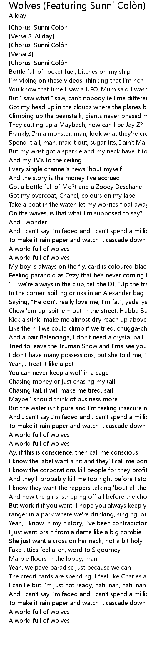 | 歌曲 | Wolves (Featuring Sunni Colòn) |