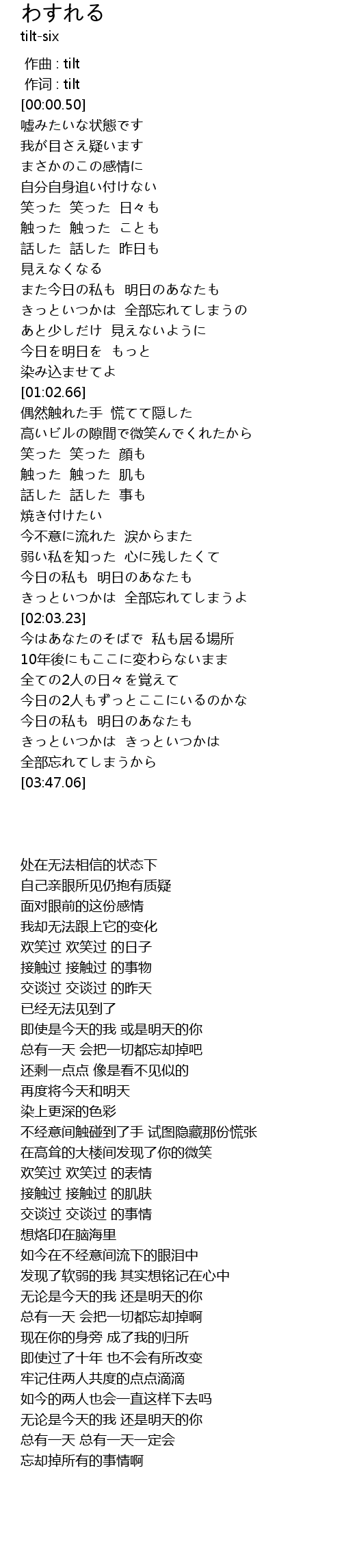 | [02:59.56] | 全ての2人の日々を覚えて |