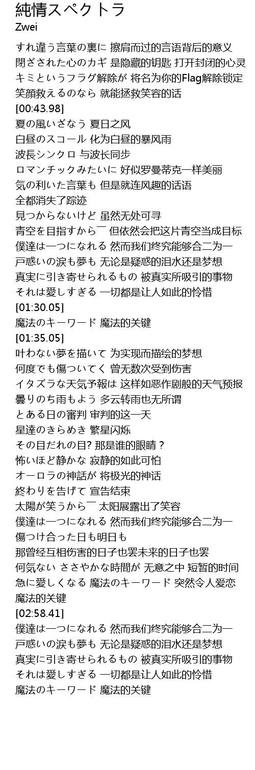 | [02:33.66] | 僕達は一つになれる 然而我们终究能够合二为一 |
